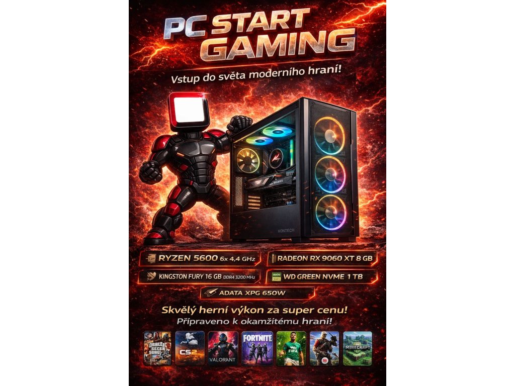 Für bewährte Leistung sorgt der AMD Ryzen 5 5600 – ein Sechskernprozessor, der moderne Spiele, Multitasking und alltägliche Arbeiten ohne Zögern bewältigt. In Verbindung mit der Radeon RX 9060 XT 8GB bietet er flüssige FPS und ein großartiges Spielerlebnis in Full HD-Auflösung.